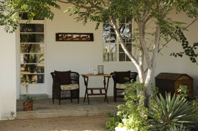 We are a small guest farm with eight large, comfortable rooms for a total of 15 to a maximum of 21 guests. The Comfort Rooms are situated next to the main house in the middle of our desert garden