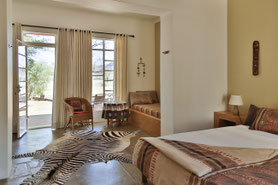 The romantic room has a large double bed, spacious bathroom, air conditioning, fridge and a lounge area for relaxing. From the veranda you have a unique view of the Tsondab River and the Naukluft Mountains. Here you can really enjoy your holiday and relax.